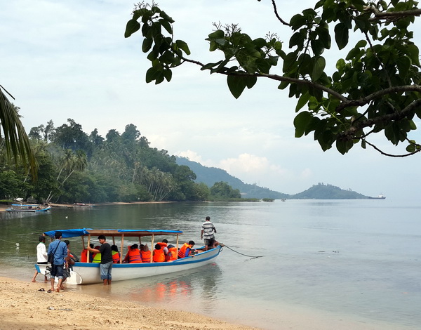 From our private wooden pier in Bungus Bay, get on our local wooden speedboat, it is about 1 hours distance to Pagang Island.
