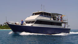Nagalaut cruises at 8 - 10 knots (9.1 - 11.4 mph) and is powered by two, 220 HP engines. Accommodation: five separate cabins comprising, 4 double cabins, and one cabin with room for four people. Comfortably hosts up to twelve surfers....... click image for details.